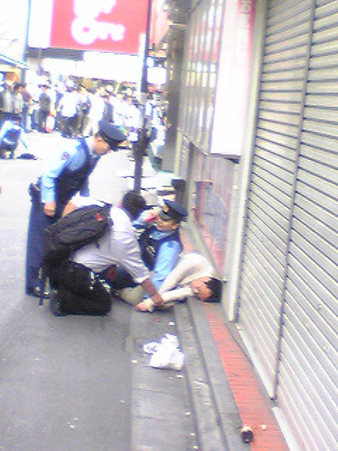 た。通行人が寄り添って介抱していたが、ほとんど反応していなかった。