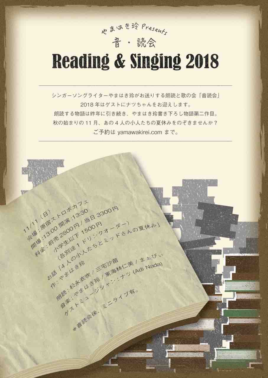 シンガーソングライターやまはき玲がお送りする朗読と歌の会「音読会」。