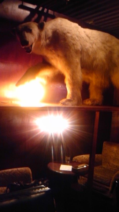 写真はとあるカフェ。この熊の下でごはん食べたよ。超怖かった。いろんな意味で!
