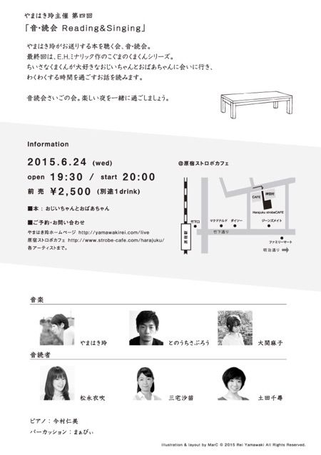 【音読会とは】...児童書を役者達が朗読し、劇中歌をミュージシャン達が書下ろし、演奏してストーリーを進めていきます。お芝居のようなミュージカルのような、ひとつのお話を出演陣全員で作り上げます。