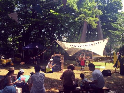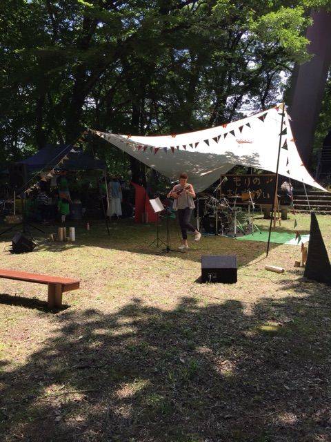 幼馴染の久美ちゃんが送ってくれて、もりのひへ。作家さんたちが森の中にお店を出していて、音楽の広場やごはん屋さんやお菓子屋さんが居て、ワクワクしました。