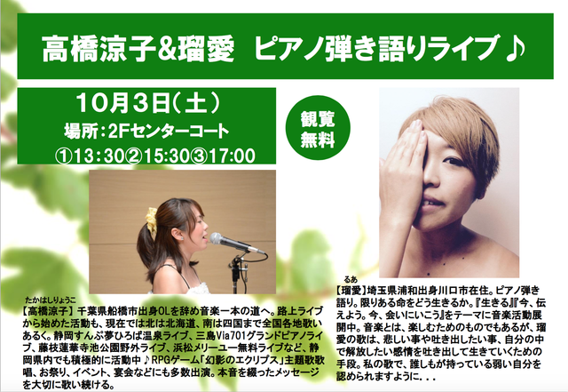 『瑠愛&高橋涼子 ピアノ弾き語りライブ♪』