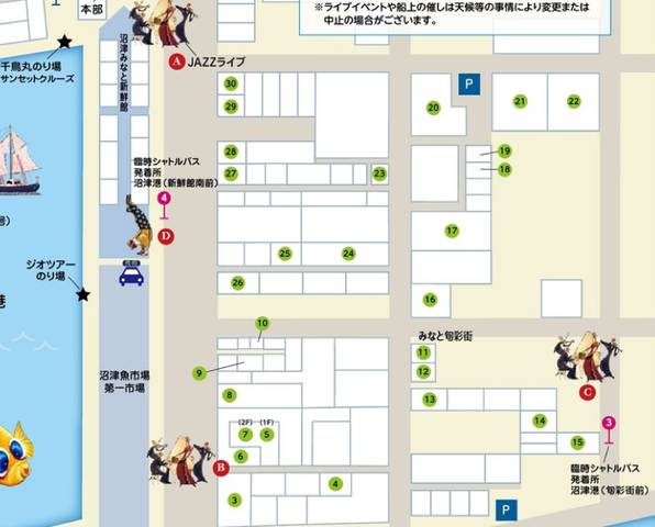 アクセス ・JR沼津駅南口からバスで10分沼津港下車(沼津港周辺)