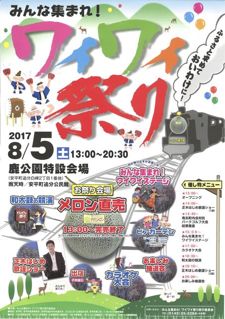 【#LiveInfo】8/5(土) 北海道 安平町 ワイワイ祭り 初出演☆ 2017年07月19日 12:00 ひまわり音楽祭に先立って 8月は頭にも安平に歌いに行かせていただきます☆ 8/5(土)北海道安平町 鹿公園 特設会場 「ワイワイ祭り」 時間:13:00〜20:30 瑠愛の出演時間は16:10〜16:30🎶 ワイワイチラシ メロン直売、、、気になる!!! 歌謡ショーや、和太鼓、子供縁日出店などなど!!! ひまわり音楽祭とはまた違ったお祭りなので おちかくの方は是非遊びに来てくださいね☆ ひまわり音楽祭の宣伝頑張ります☆ タグ :#北海道 #安平町 #鹿公園 #ワイワイ祭り < 前の記事 次の記事 > コメント コメントフォーム 名前 コメント 評価する 1 2 3 4 5 リセット 1 2 3 4 5 リセット 顔 星 投稿する 情報を記憶