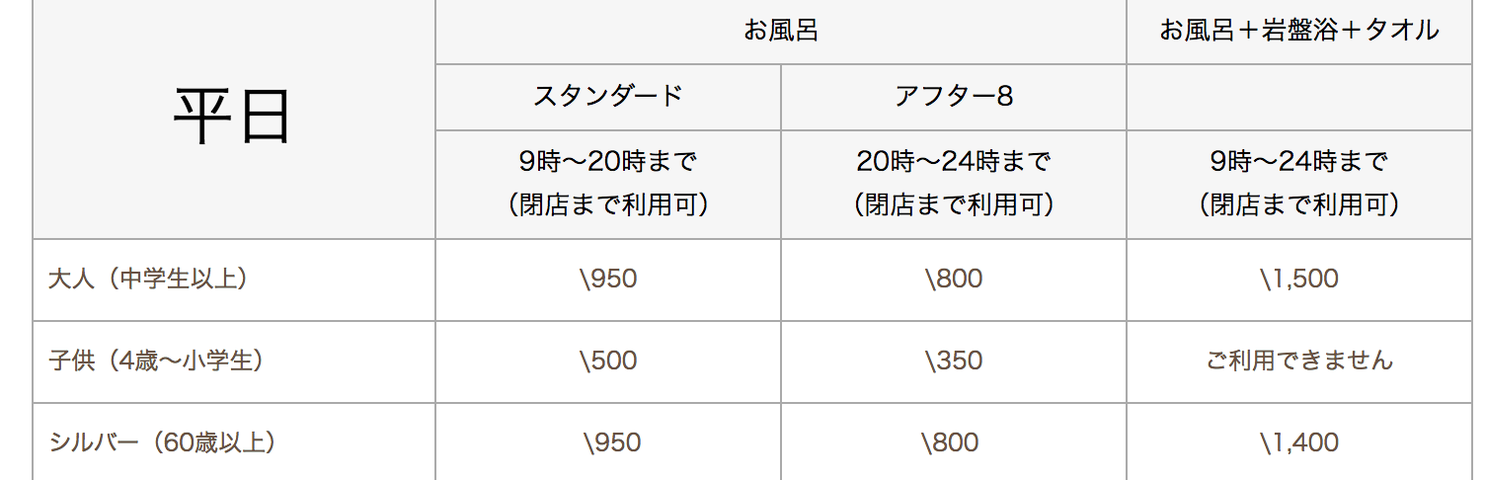 ※(注記)会員様はお風呂ご利用の場合は50円、岩盤浴もご利用の場合は100円割引になります。