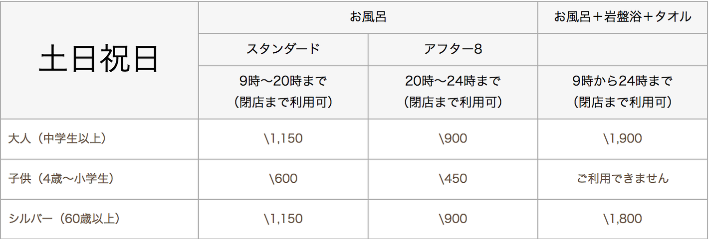 ※(注記)入館時間により料金が変わります。各プラン閉店までご利用可能です。