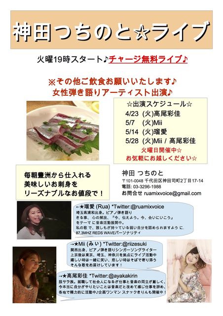 火曜日はつちのとでMiiちゃんと投げ銭ライブでした☆