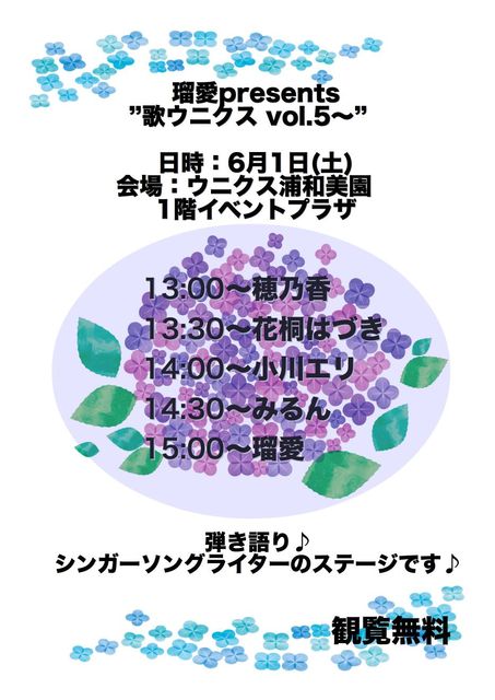 弾き語りシンガーソングライターによるライブステージをお楽しみください☆