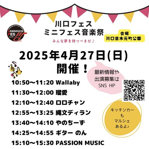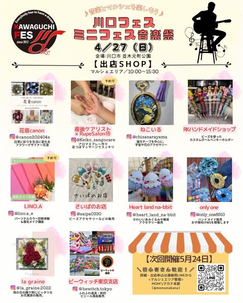 【LiveInfo】4/27(日)川口 並木元町公園 川口フェス2025 ミニフェス 2025年04月23日 06:49 退院! 4月唯一のライブです! 川口フェス2025始動します! 応援よろしくお願いします! マルシェ、キッチンカーもたくさん出店しますので 買い物、ご飲食もたくさん楽しんでくださいね❤️ この日からスタートのグッズもありますよ カラフル、旗、音楽フェス、Snapchatフィルターのコピーのコピーのコピーのコピーのコピー IMG_9432 IMG_9433 IMG_9432 IMG_9615 IMG_9614 < 前の記事 次の記事 > コメント コメントフォーム 名前 コメント 評価する 1 2 3 4 5 リセット 1 2 3 4 5 リセット 顔 星 投稿する 情報を記憶