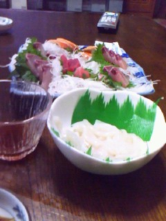 着くなりお刺身にビール...、そして大好きなお父ちゃん特製和風ハンバーグ。