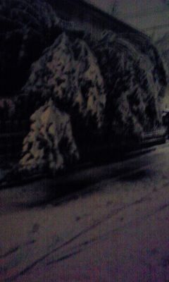 いつもなら、そこそこ車の走る通りも閑散...、雪の重みで垂れ下がる枝...。