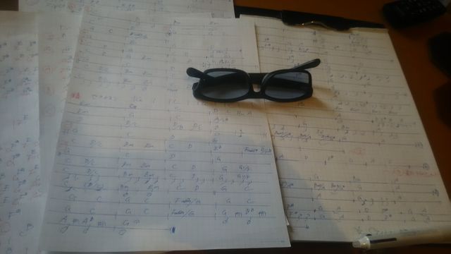 昨日、そして今朝もはよから、リハ用に新曲のコードを記した簡易譜面を書いてます。