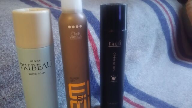 そこで、また美容師に調べてもらったところこのふたつ、ジオ スプレー SOLID HOLDとWELLA EIMIスーパーセットスプレーを薦められました。