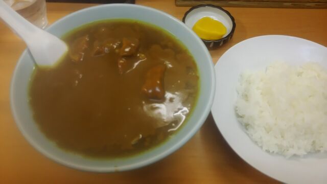 もちろん中華そばもありますが、仲間のお薦めでカレーラーメン&半ライス。