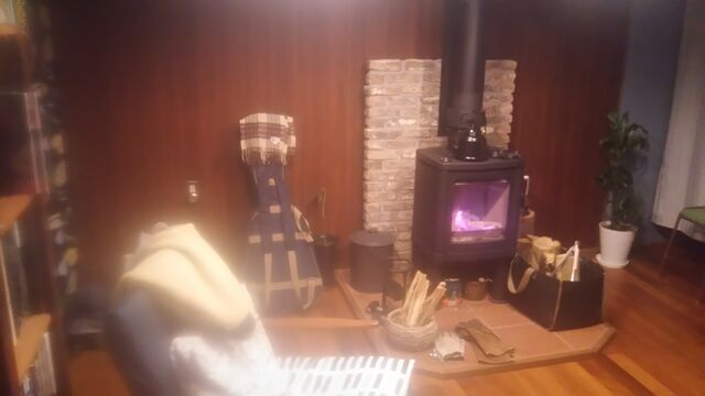 そのリビング、テレビはないけど薪ストーブが...。