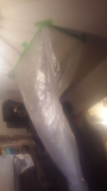 って、何コレ〜、天井からビニールを筒状にして、床に置いたバケツに雨水を...、って感じ。
