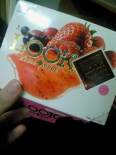ビターチョコレートの中にストロベリーソースが入ってます。