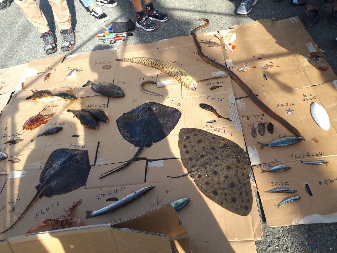 釣ってきた魚たちを並べて子供たちに魚の名前を覚えてもらうコーナーはとってもいいアイデア。