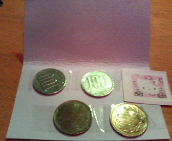 1094f047.jpg自動販売機でミルクテイーを買ったら十六茶がでてきたのね。お茶なんてほとんど飲まないからちょっといらっとして販売機に書いてあった電話番号に電話をしたらお金を送ってくれるそうでとりあえず安心したところで次は大丈夫だろうとミルクティーのボタンを押すとまたもや十六茶。またちょっといらっとしてまた電話。ミルクティーを飲ませろー!!3日後厚紙に貼られた220円となぜかキティーちゃんの切手が。。なんかかわいいね。どうもです。