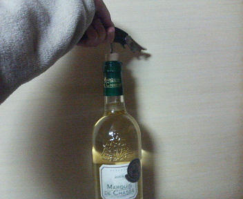 c0614721.jpgおーいおーい!なんだってんだよ。今日はもう疲れたしワイン飲みたくなってつまみも買ってさあってときなのに家に着いてから1時間戦ってます。コルク固すぎ!あーいらいらいらいら。あーワインちゃんあいてー!!あーいらいら。