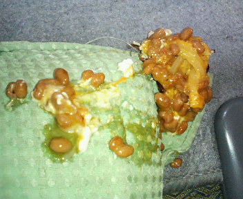 c272c7c0.jpg はいどうもどうも。。フライデーユーコです。ほんと日記って難しいです(笑)。なかなかこういうハプニングがないと書けないもので、、。いやいや言い訳です。さぼってました。すいません。え〜っとこれは納豆と卵を混ぜたものです。座椅子とカーペットとのコラボレーションで写真には写ってませんがわたしのズボンの膝にも仲良くべったりという状況です。食パンのまわりにマヨネーズで囲いをつくってその中に納豆と卵を混ぜたものを流しいれてオーブンで焼いてさあ頂きますというときにずるずるっとこうなって、わ〜!!っとなって、よっしゃあ日記!と思って写真撮影しました。ぐろくて素敵な写真が撮れましたね。ありがとう。ごめんなさい。