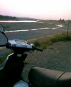 夕焼け多摩川にてモノ思フタナカ