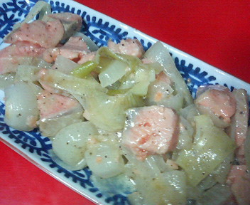 前回の日記はすいませんでした。サーモンマリネをつくったわけです。たまねぎを低温の油であげたものと厚めに切った生のサーモンとレモン汁とお酢やこしょうを混ぜて冷やしてはいできあがり。