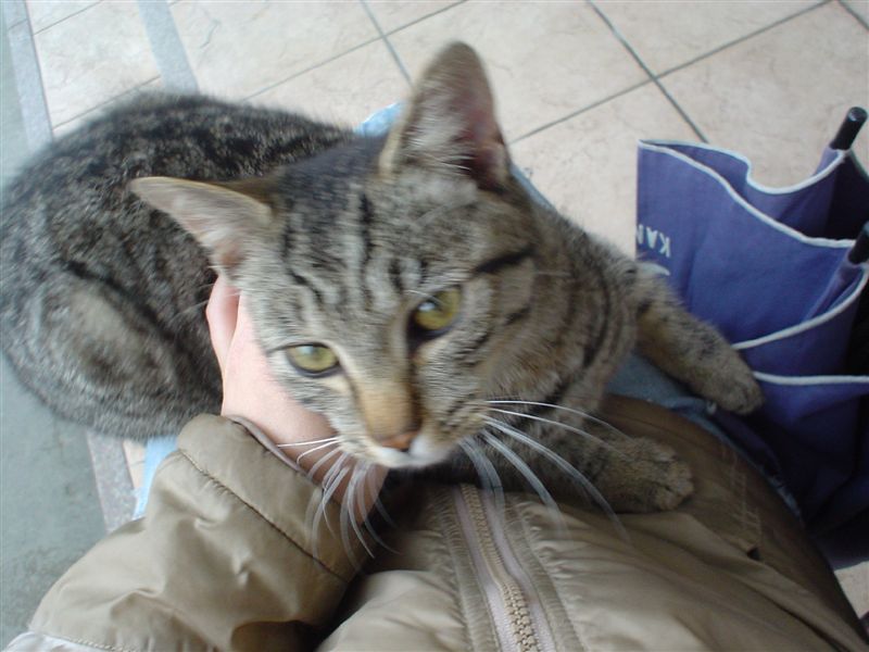 ともだちのごっつん。アクセントは「つ」のとこじゃなくて「ご」でごっつん。ねこがよく人間に近づいてくるときとかに頭をごつんとするでしょ?あのごつんが今までの誰よりもパワフルだからごっつん。こいつの縄張りはうちのアパートからちょっと離れてるのでいつもわざわざごっつんの縄張りの路地を通ってやつに会いにいく。機嫌がいいと膝に乗ってきてかわいいけど機嫌が悪いと近付けたあたしの顔をかんだりもする。ひっかかれたりもよくする。見てのとおりちょっと目がろんぱっている。しっぽも短くてなぜかお尻の毛がうすい。へんなやつ。昨日も膝に乗ってあたしのスペシャルマッサージにごろごろ言ってたくせに突然膝をおりたかと思ったら怒りながらあたしの手をかみまくってあげくのはてにねこパンチを4回くらった。さすがになんだか絶望的な気分になって泣きそうになった。なんなんだこいつは。ねこのくせにちきしょー。毎日あいてえよ。