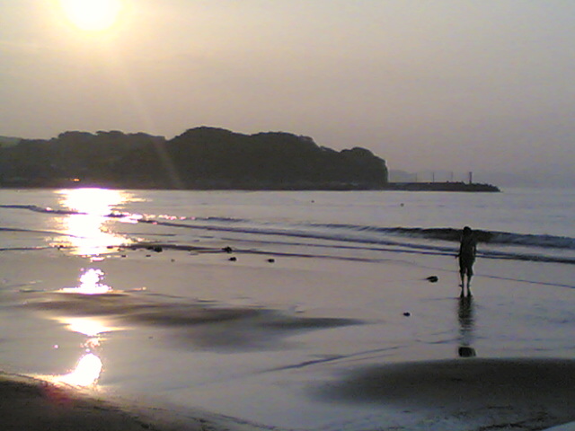 そんな早朝6時前の写真。朝日が海面に反射してめちゃくちゃ綺麗でした。(右下のほうにちっちゃく写ってるのはユーコさん)
