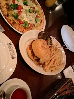 お洒落な内装、メニューでアキバらしからぬお店(って言ったら失礼かな?)へ行き、チーズバーガーとカニのピザとデザートを食す。話すこと3時間。