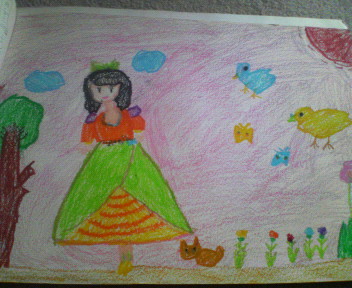 これは私が4歳のときのお母さんの日記から写したもの。あたしがしゃべったことを残してくれていたのね。こないだのお正月に実家に帰ったときに見せてもらったんだ。確か5月の日記だったな。8月まで3ヶ月もうちを離れるつもりだったようだ。このときのことを実はあたしも少し覚えていて、なんだか誰かと約束があって、急に別の星に行かなきゃいけなくなって、大きい紙袋(実際にはビニール袋だった)2つ分くらいに身の回りの服やらぬいぐるみやらおもちゃをつめた記憶がちゃんとあるの。結局お母さんが誰かと電話をしているふりをしていたのか電話を切ったあと、「今日はなしになったそうよ」みたいなことを告げられ泣く泣く冒険をやめたのでした。いやあ止めてくれて正解(笑)。こどもの発想はおもしろい。あたいも4歳の頃はこんな素敵な絵が描けたんだ。おっと今とかわらねえ。。。