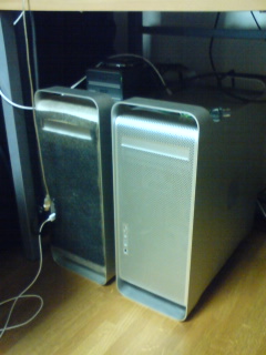 写真は先週末衝動買いしたMac。部屋に2台はなかなか圧巻。かなりパワーアップしたみたい。さあ、こいつで減価償却するまで仕事するでー!