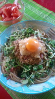 トマトとベーコンのパスタ。