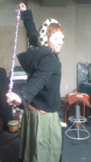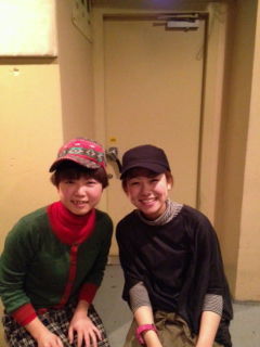 キーボードのはるみちゃんと。帽子はベースのワタロックの。