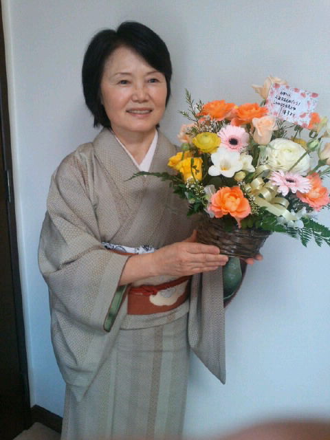 わたしの送ったお花といっしょに撮った写真を送ってくれました。
