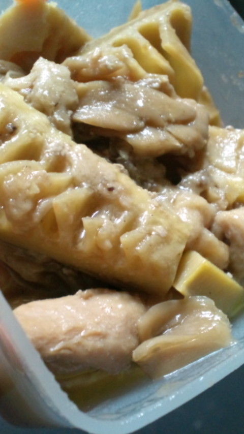 鶏肉とまいたけをいっしょに煮てお弁当に。