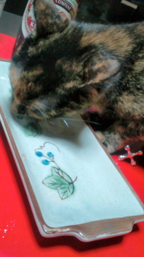 492d9011.jpgテイルくんが初めてお刺身から出た汁をぺろぺろしました!