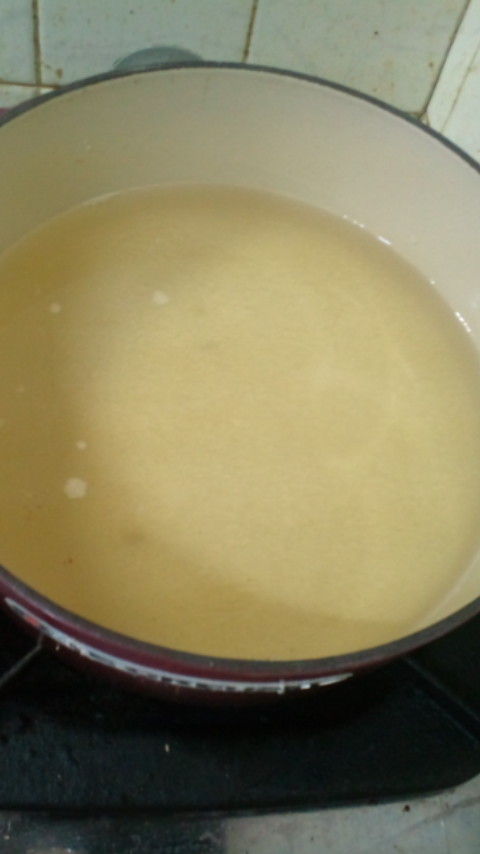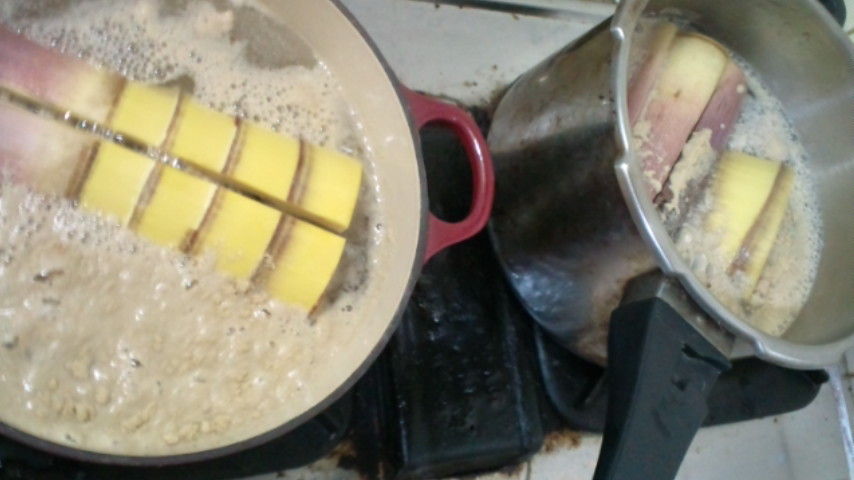 たけのこちゃんをゆでました。すごく大きくて2つのお鍋に分けました。
