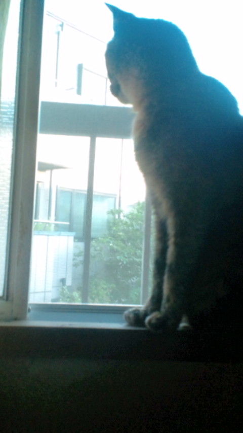 以前テイルが玄関から少〜しだけ外に出ることが何度かあって、いたずらをしてみたくなってテイルが一瞬外に出たすきにドアを閉めてみました。