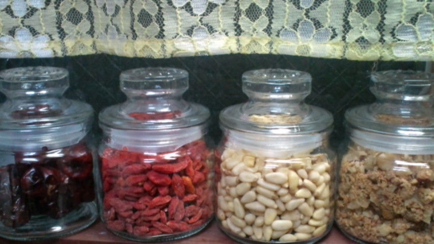 松の実、くこの実、シナモン、桜エビ、金針菜、花椒、くるみ、アーモンド、なつめ