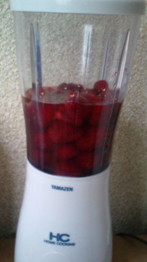 写真は先日徳さん農園でとれたおいしいイチゴをジュースにしました。