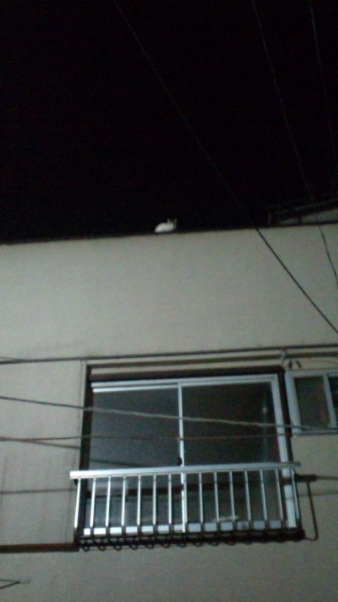 帰り道、ちょっと高いところからねこちゃんの声がして見渡してみると2階建てのアパートの上に小さいのがいました。
