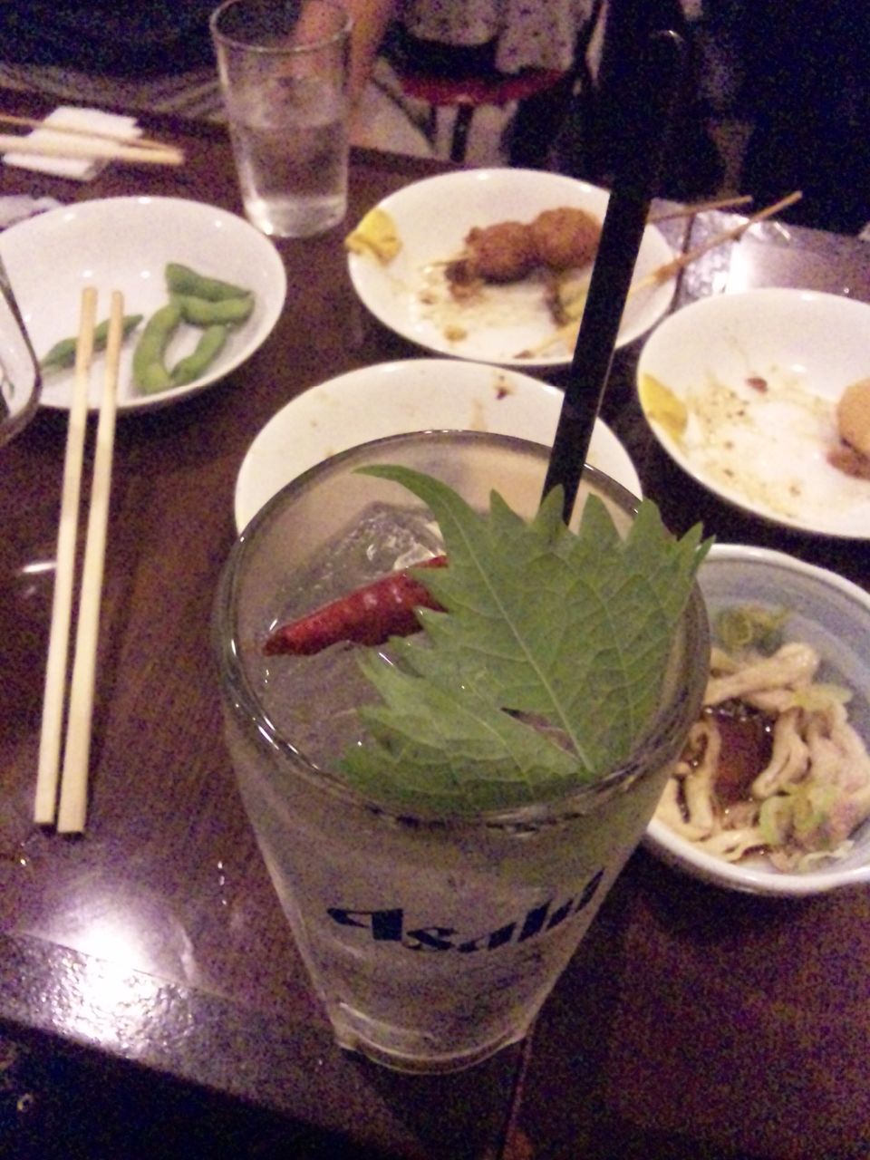 チュウハイに唐辛子としそが浮かべてありました。