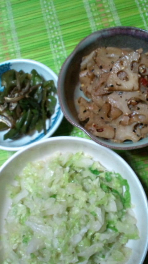 おつまみ→野菜3種(レンコン、白菜、ピーマン)