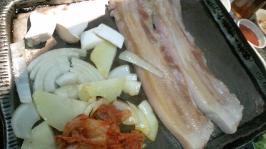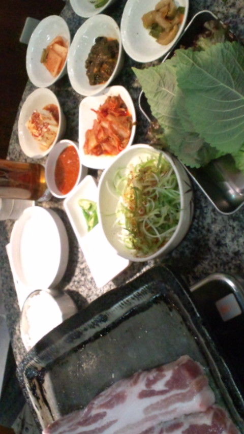 新大久保駅近くの味ちゃんというお店でサムギョプサルを食べました。