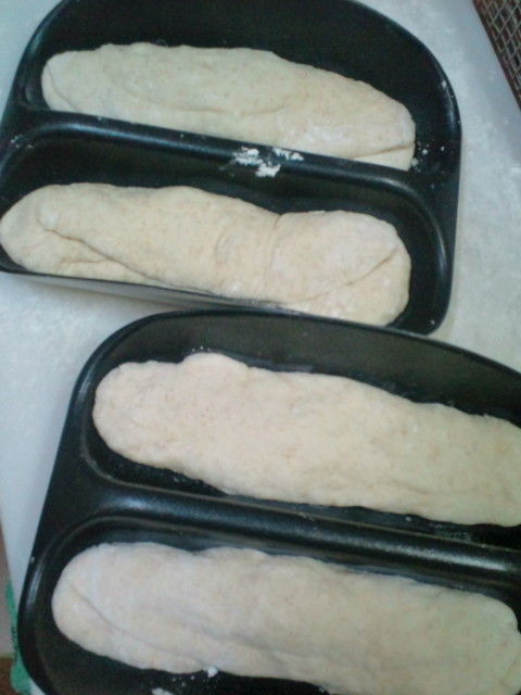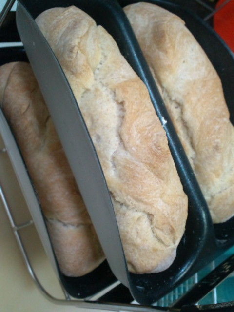 食パンはスイッチ押せば焼きあがりまでノータッチなんだけど、バケットは発酵が終わったあと生地を分けたり伸ばしたり折ったりするのでちょっと手間がかかります。
