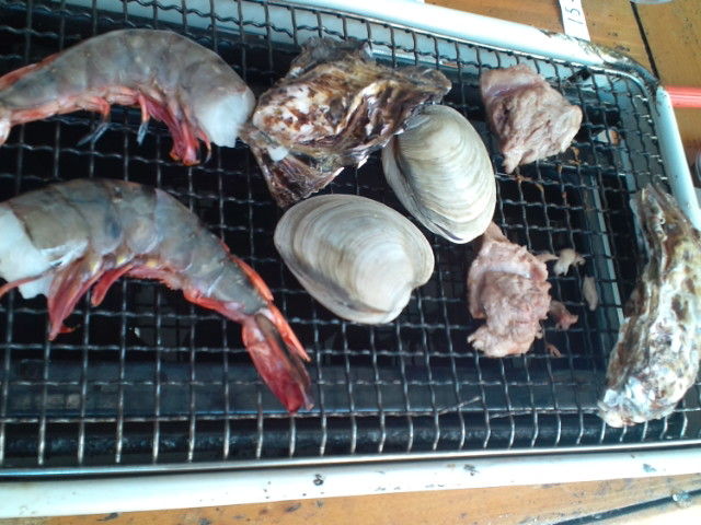 えび、牡蠣、はまぐり、さざえ、ほたて、まぐろのほほ肉、、