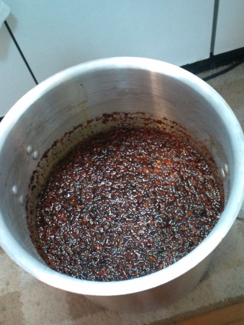 7.5ℓの油を使って5ℓのラー油を作りました。