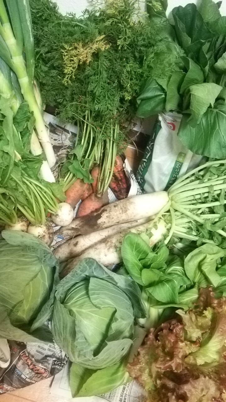 大根、にんじん、かぶ、キャベツ、小松菜、チンゲン菜、レタス、ねぎ。