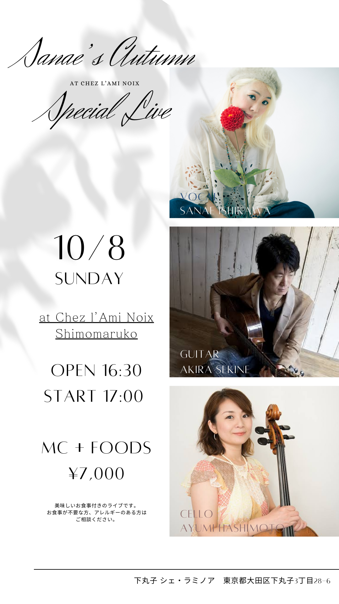 音の響きのきれいな、あたたかい空間✨美味しいお料理付きのライブで初出演させていただきます✨信頼のギタリストに、ずっと一緒にやりたいと思っていた素晴らしいチェリスト橋本歩さんを迎えた初トリオ❣️ぜひぜひいらしてくださいませ❣️